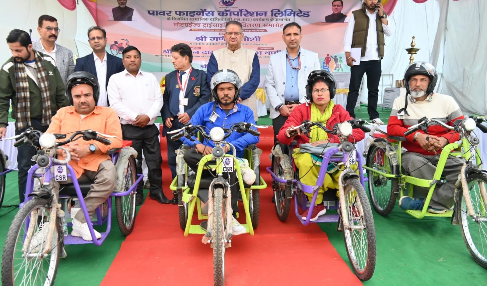 देहरादून: कैबिनेट मंत्री गणेश जोशी ने देहरादून के राष्ट्रीय दृष्टि दिव्यांगजन सशक्तिकरण संस्थान परिसर में एलिम्को के माध्यम से आयोजित दिव्यांगजनों को मोटराइज्ड ट्राईसाइकिल (इलेक्ट्रिक) वितरण कार्यक्रम में मुख्य अतिथि के रूप में प्रतिभाग किया। कार्यक्रम में पावर फाइनेंस कॉर्पोरेशन लिमिटेड (पीएफसी) की सीएसआर निधि से 169 दिव्यांगजनों को निशुल्क इलेक्ट्रिकमोटराइज्ड ट्राईसाइकिलें वितरित की गईं कैबिनेट मंत्री गणेश जोशी ने इस सराहनीय पहल के लिए पावर फाइनेंस कॉर्पोरेशन लिमिटेड के अधिकारियों को शुभकामनाएं दीं। उन्होंने कहा कि संस्था द्वारा अपने निगमित सामाजिक दायित्व के अंतर्गत लगभग 1 करोड़ रुपए की धनराशि इस उद्देश्य के लिए उपलब्ध कराई गई है।